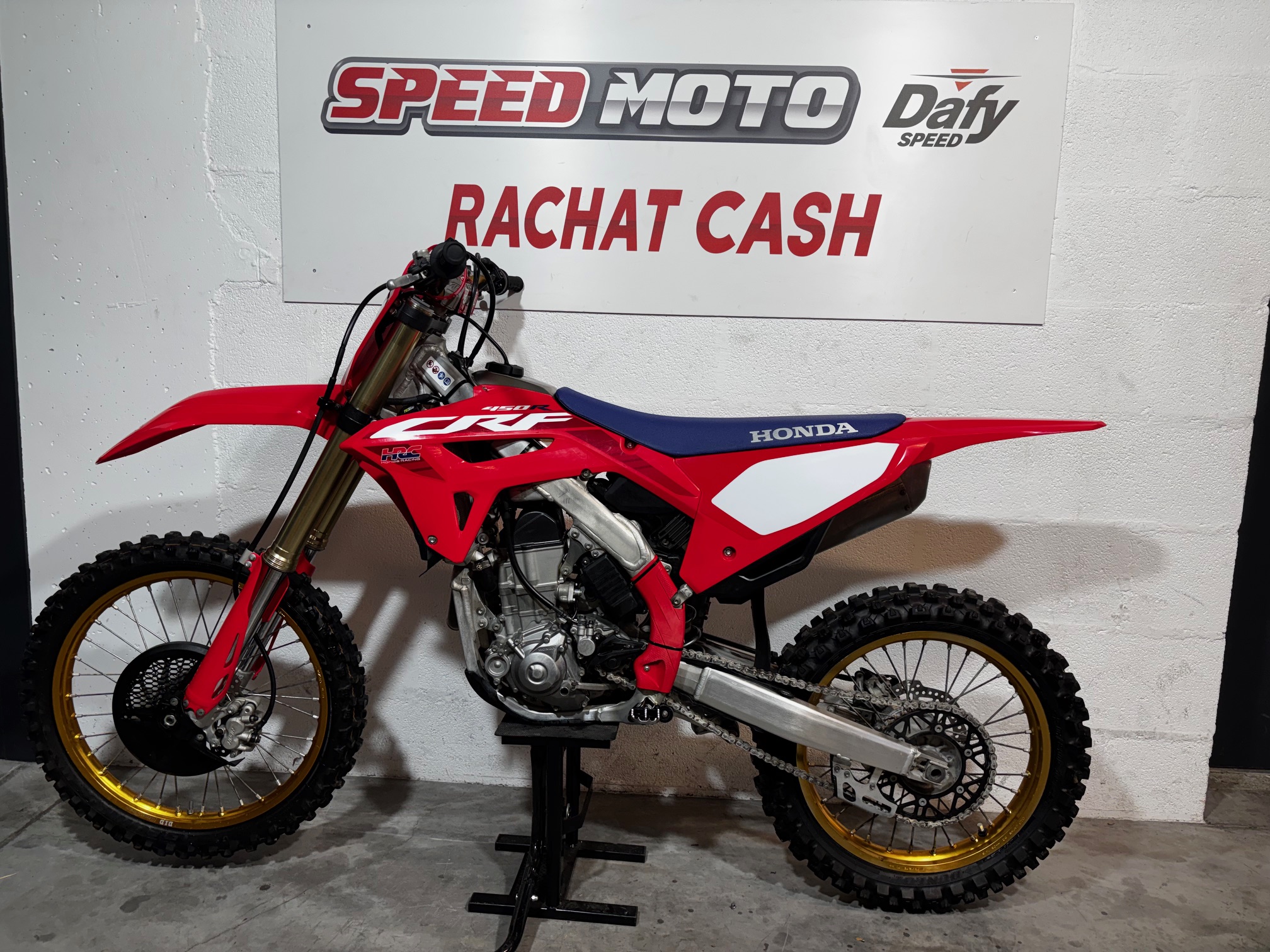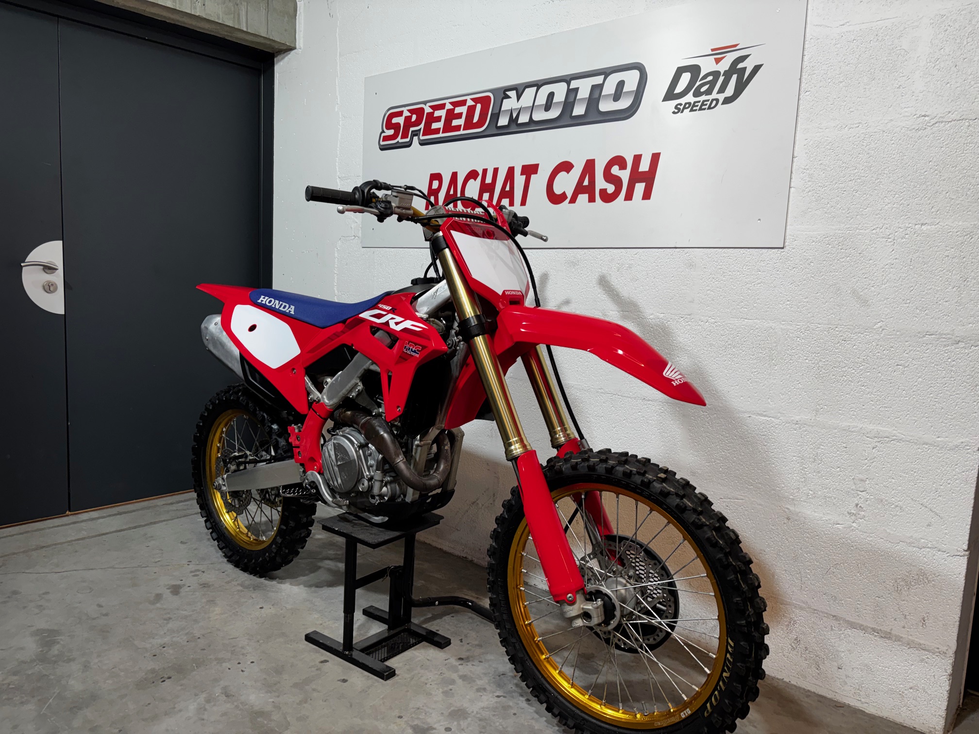 A vendre HONDA 450 CRF 50th en dépôt vente, seulement 30 heures, en très bon état. Visible en magasin.