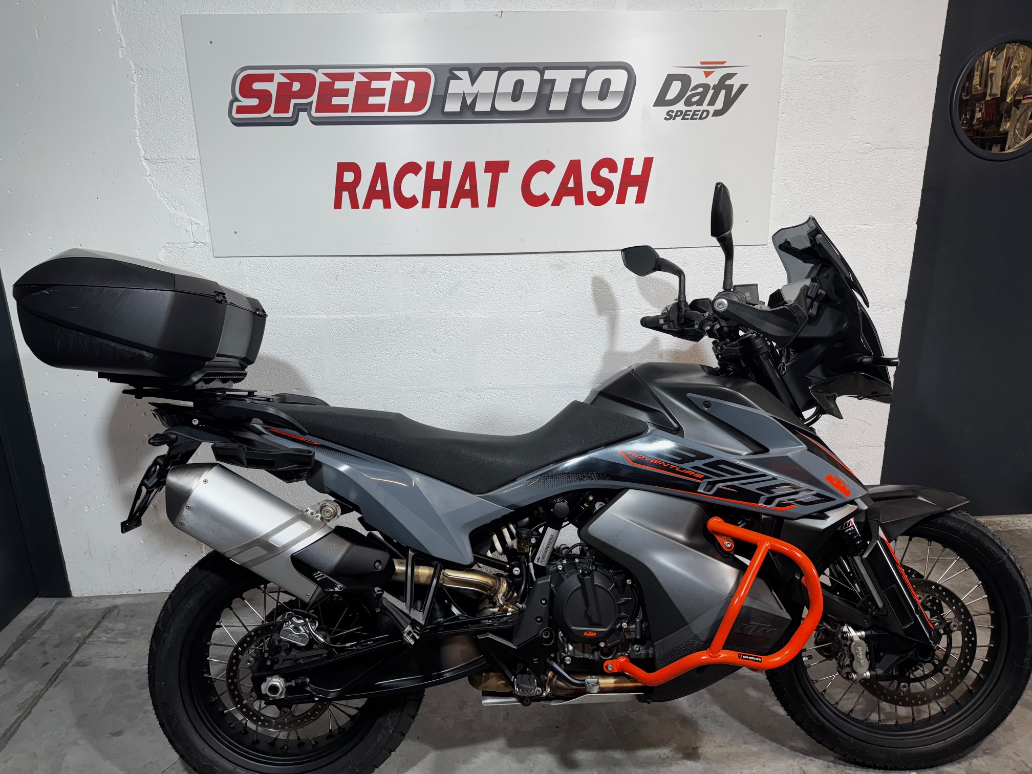 KTM 890 ADVENTURE, entièrement révisé (révision des 60 000 kms) vendu avec TOP CASE et VALISES LATERALES KTM. Bon état général. Pneu avant et arrière neuf, monté en MICHELIN ANAKEE. Rien a prévoir après la vente.